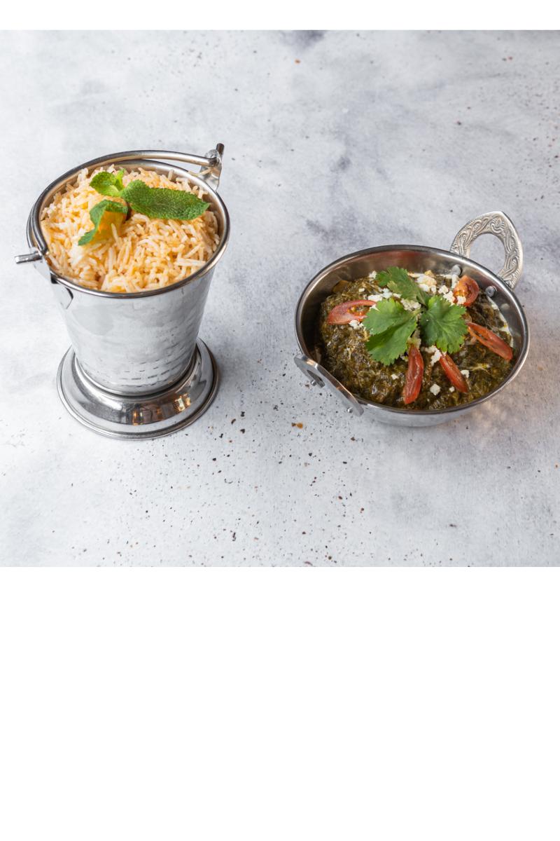 Hjemmelagt ost (panir)kokt i spinat, ingefæer, hvitløk og `heeng masala`.(MILK, NUTS, GLUTEN)