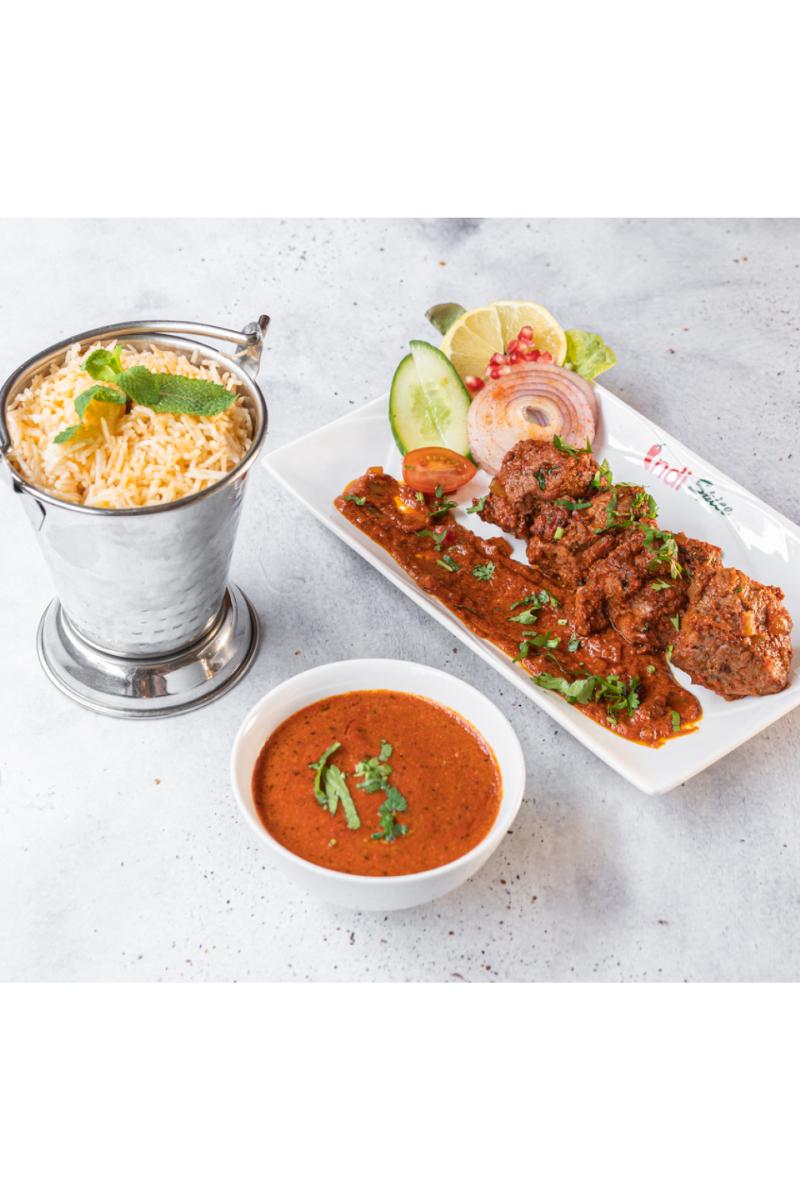 Lam først marinert i ingefær og hvitløk deretter i yoghurt, kumin og ´garam masala´. Milk, Nuts and Gluten